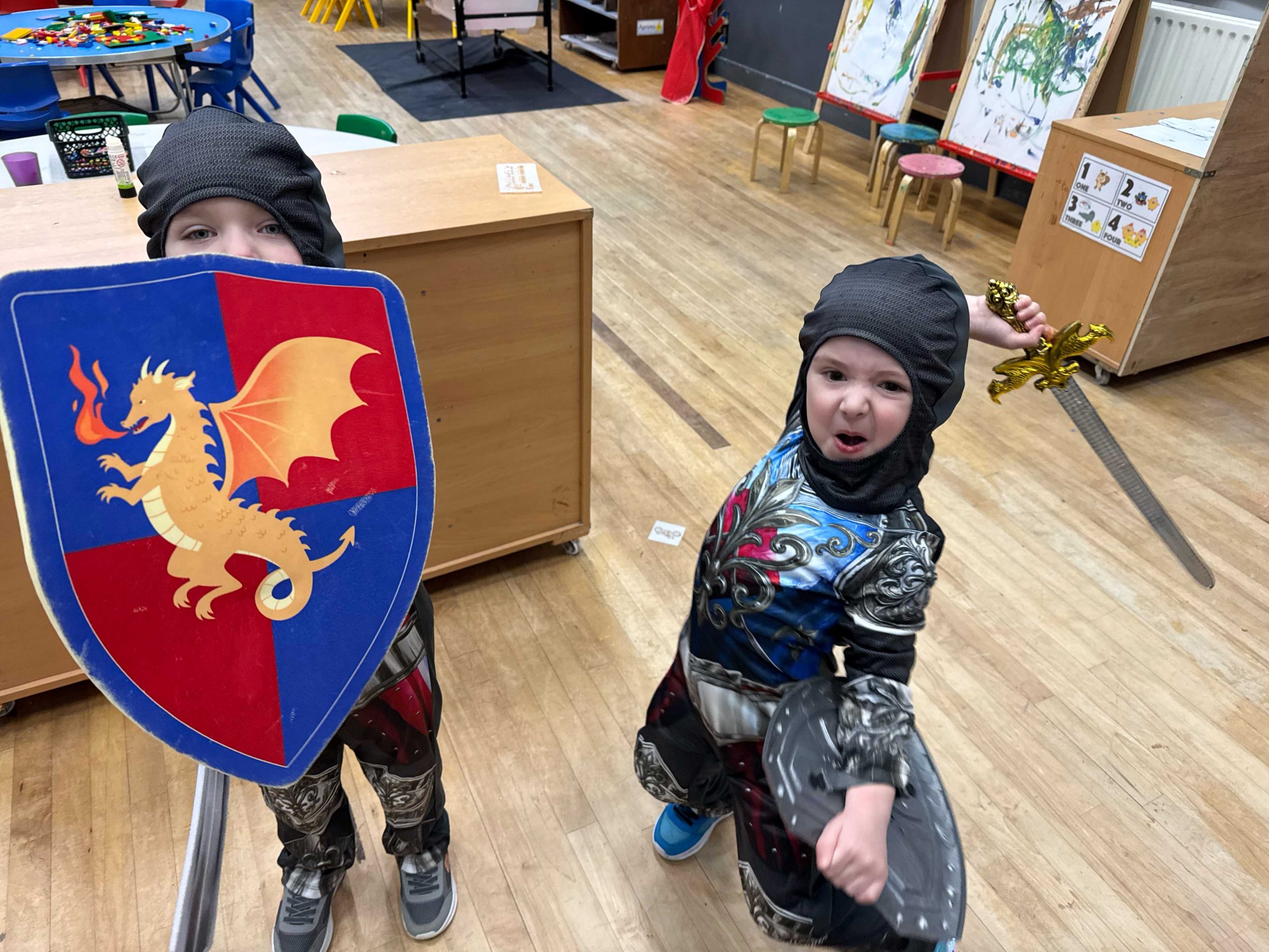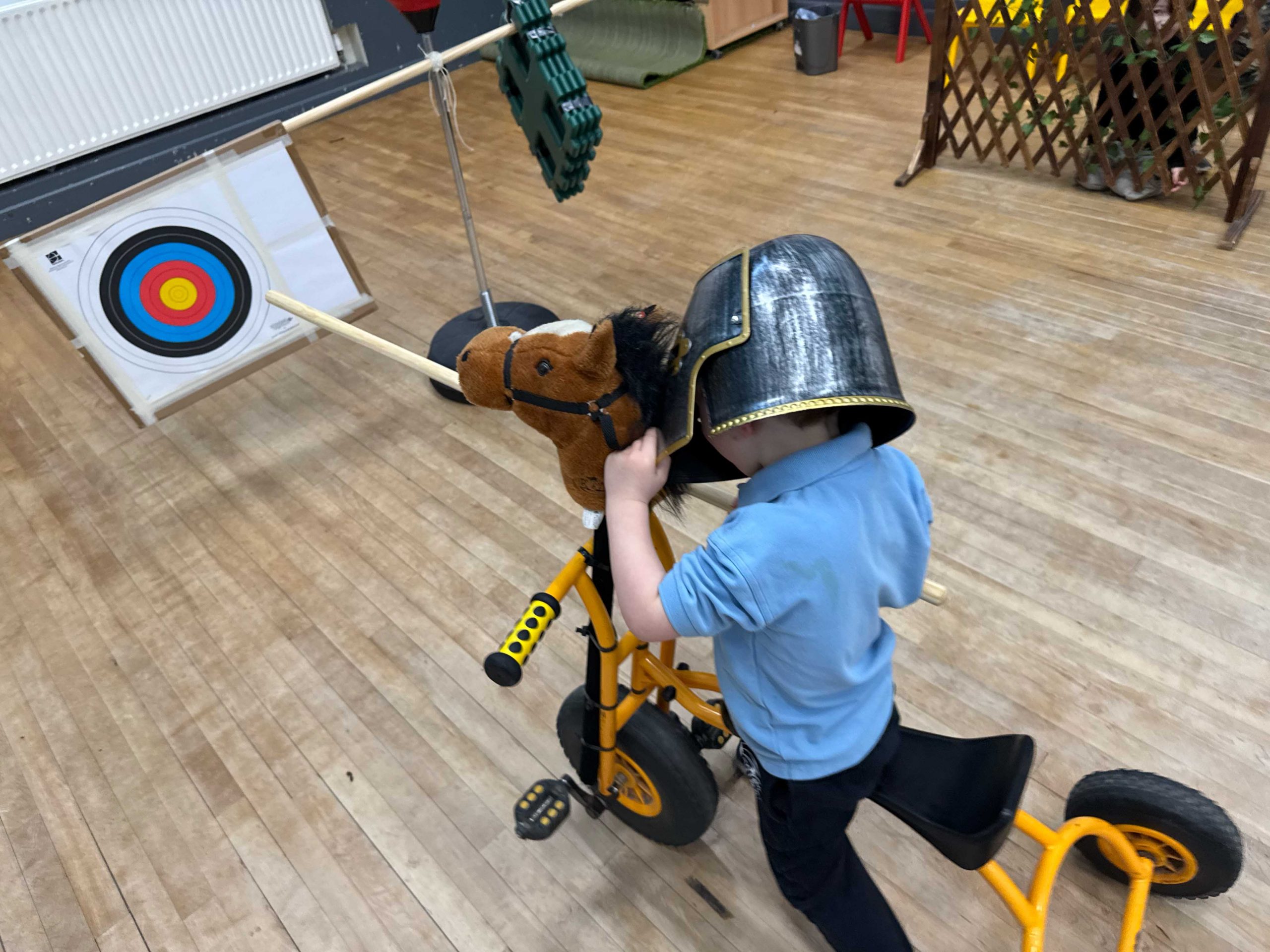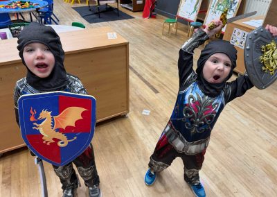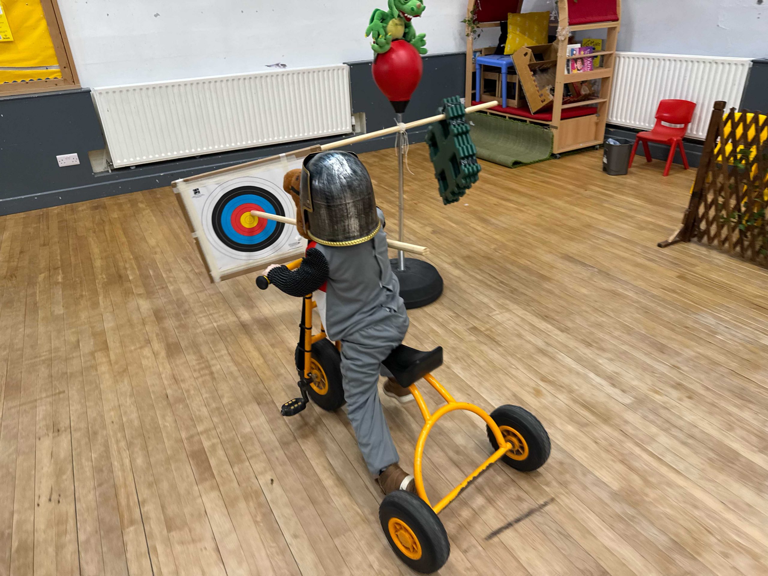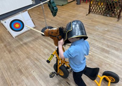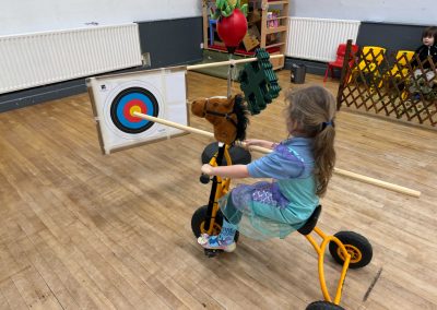 We’ve been investigating fairytales this week and learning about a few of the characters we might find and the places they live. We learned about castles 🏰 home to kings 🤴and queens 🫅, protected by battlements filled with archers 🏹 and drawbridges and portcullis’ to keep villains out, and we built a few of our own. Everyone became knights 🛡️ for a day testing their skills with swords ⚔️ and armour, and we rounded off the week with a jousting competition which tested horse riding 🐴 and lance skills.